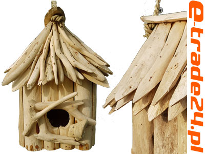 • Budka lęgowa dla ptaków wykonana ze starego egzotycznego drewna