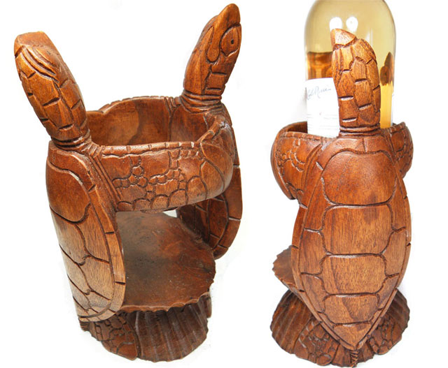 • Stojak jest wykonany z twardego drewna suar, przedstawia żółwia.
