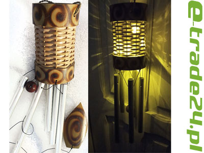DZWONEK WIETRZNY, BAMBUS, RATTAN + Lampki LED - super dźwięk
