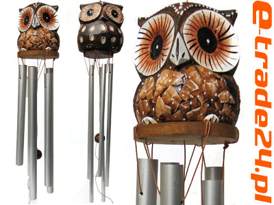Strona główna » Dekoracje wnętrz i ogrodu » Maski z drewna, Dekoracje ścian » Dekoracje ścian do 35 cm » Dzwonek Wietrzny Rzeźba Drewno SOWA Metalowe rurki 15mm