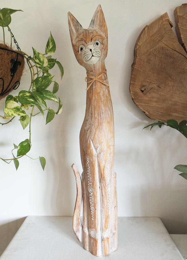 Strona główna » Dekoracje wnętrz i ogrodu » Rzeźby figury Zwierząt » Figurka Koty Rzeźba Drewniana KOT 100cm Rękodzieło Beż