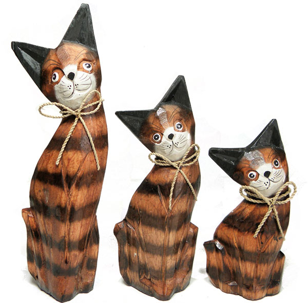 Figurka Koty Rzeźba Drewniana KOT 25/20/15cm kpl