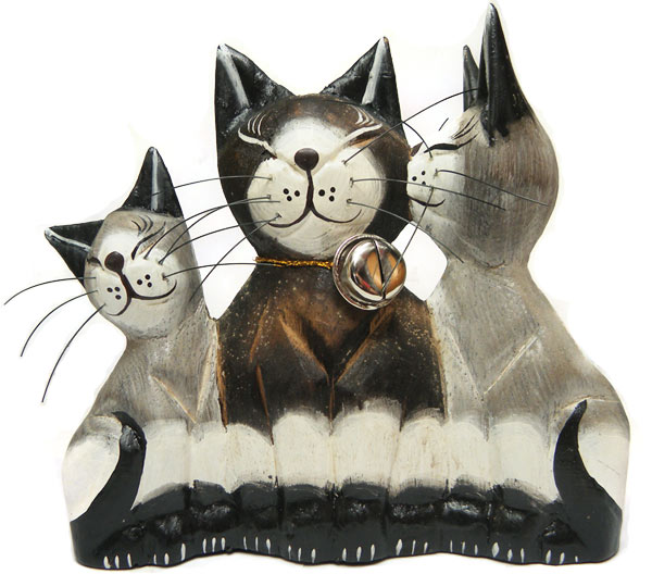 FIGURKA DREWNIANA - KOTY RODZINA - z dzwoneczkiem