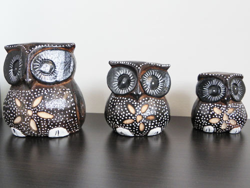 Strona główna » Dekoracje wnętrz i ogrodu » Rzeźby figury Zwierząt » Figurki Rzeźby Drewno SOWA komplet 3 Sowy Rękodz.