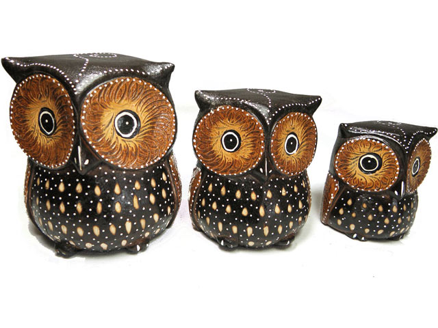 Strona główna » Dekoracje wnętrz i ogrodu » Rzeźby figury Zwierząt » Figurki Rzeźby Drewno SOWA komplet 3 Sowy Rękodz.