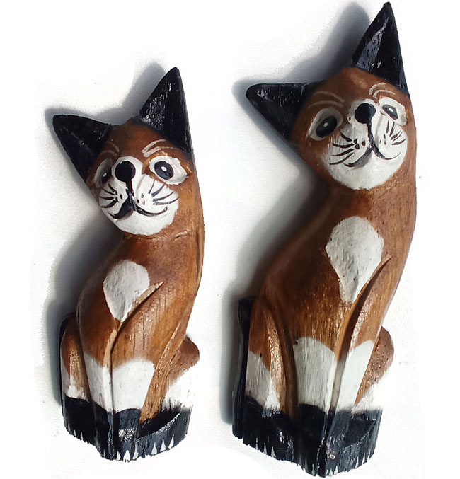 Strona główna » Dekoracje wnętrz i ogrodu » Rzeźby figury Zwierząt » Komplet Koty Rzeźba Drewniana 2szt para 12 i 15cm