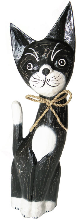 Skład kompletu: 1 rzeźba kot drewno, rękodzieło.