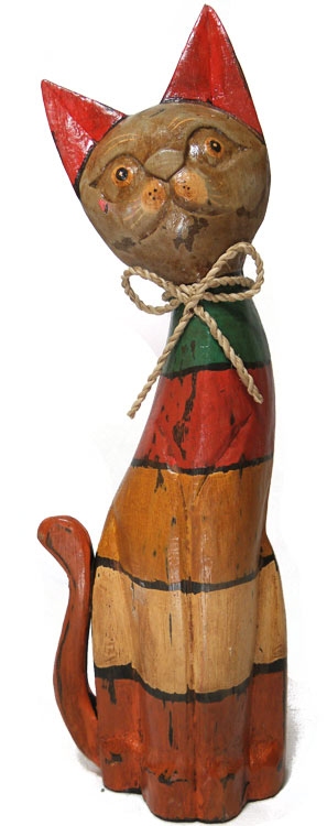 Skład kompletu: 1 rzeźba kot drewno, rękodzieło.