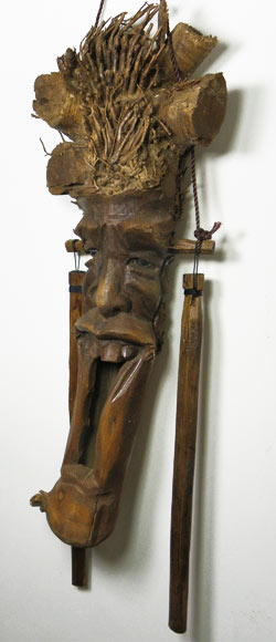 Strona główna » Dekoracje wnętrz i ogrodu » Maski z drewna, Dekoracje ścian » Dekoracje ścian od 55 cm » Rzeźba GŁOWA Dzwonek Wietrzny Korzeń Drewno 65-75cm