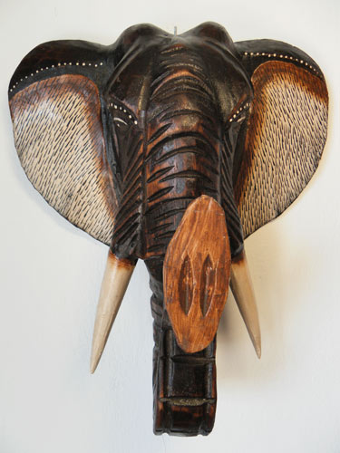 Strona główna » Dekoracje wnętrz i ogrodu » Maski z drewna, Dekoracje ścian » Dekoracje ścian 35- 55 cm » Rzeźba Maska Głowa SŁOŃ Drewno - Rękodzieło 40x35