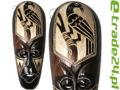Strona główna » Dekoracje wnętrz i ogrodu » Maski z drewna, Dekoracje ścian » Rzeźba Maska z Drewna Etniczna z Ptakiem 30cm