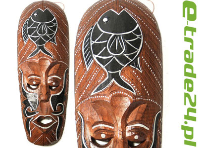 Rzeźba Maska z Drewna Etniczna z Rybą 30cm Rękodzieło Orient