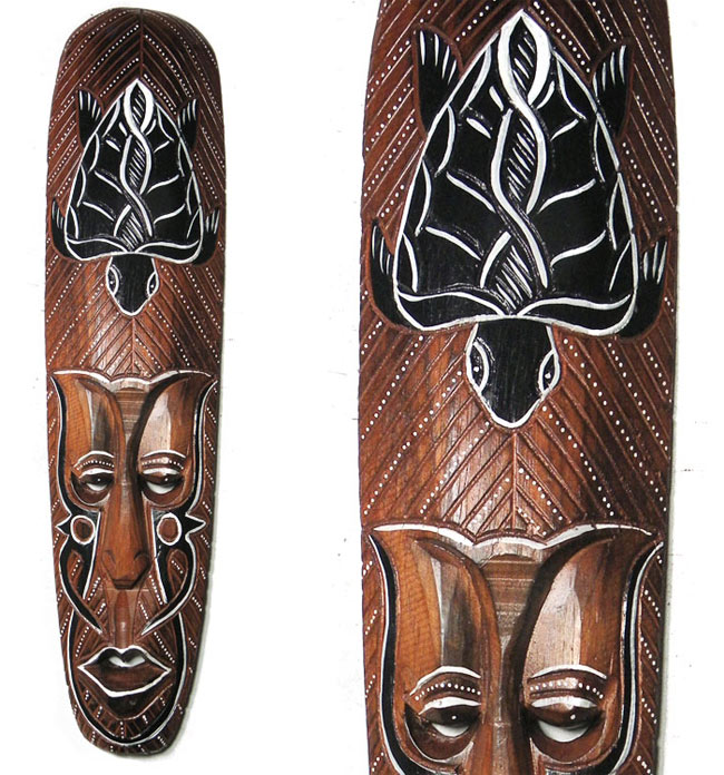 Rzeźba Maska z Drewna z Żółwiem 50cm Rękodzieło Orient
