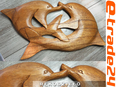 Strona główna » Dekoracje wnętrz i ogrodu » Maski z drewna, Dekoracje ścian » Rzeźba Płaskorzeźba DELFINY Drewno Rękodzieło 33cm