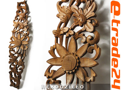Rzeźba z Drewna Panel KWIATY Ornament 78x20cm