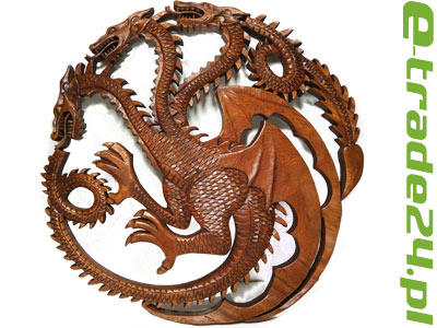 Strona główna » Ornamenty, Mandale, Płaskorzeźby, Drzewa Życia » Rzeźba z drewna Panel SMOK 3 Głowy Rękodzieło Orient 40cm